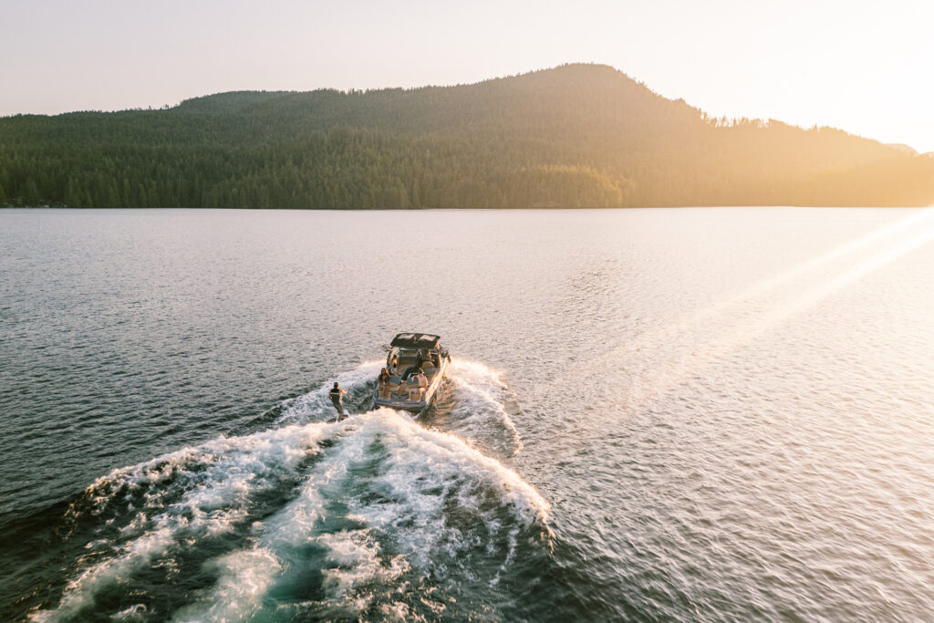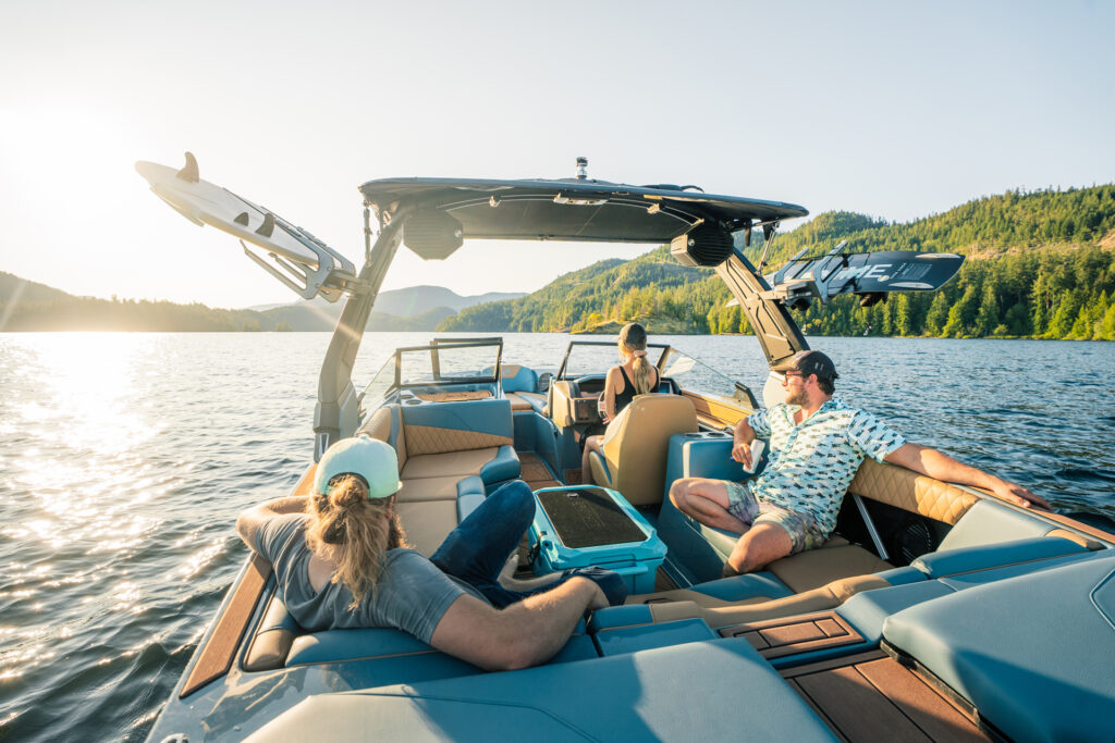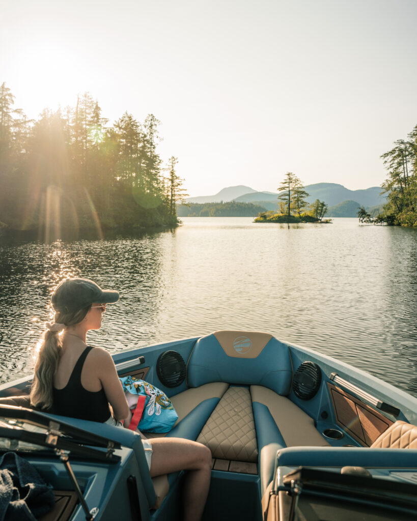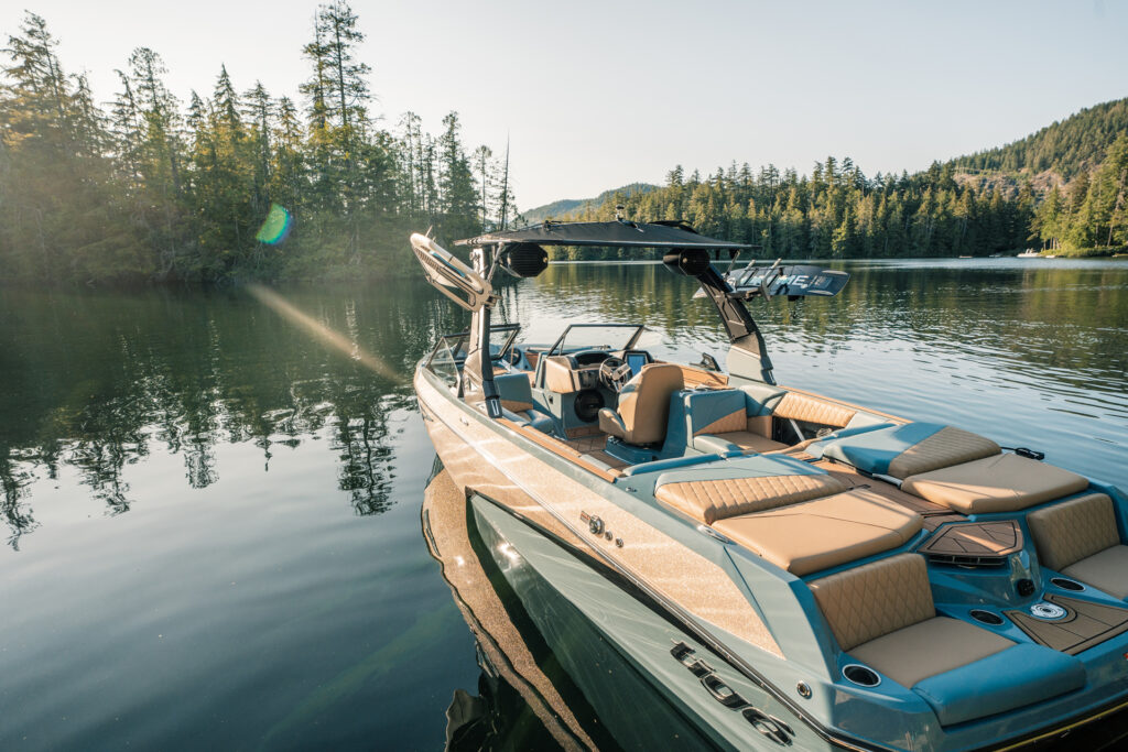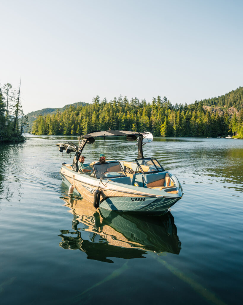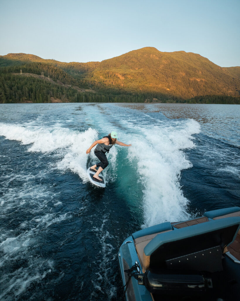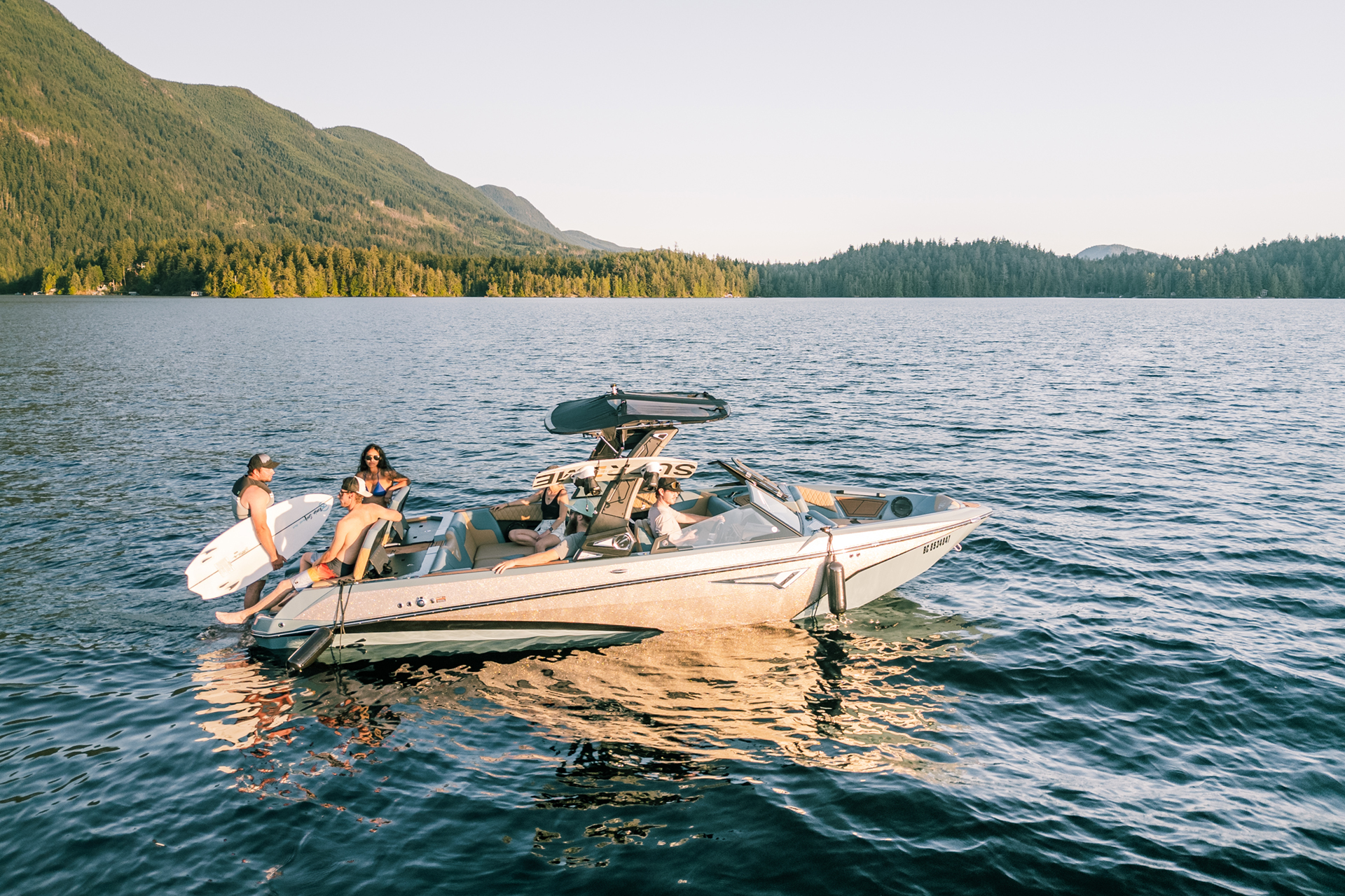 Experience the thrill of wakesurfing and wakeboarding aboard a Tige Z3 surf boat—perfect for adrenaline-filled adventures and leisurely cruises along the Sechelt Inlet.