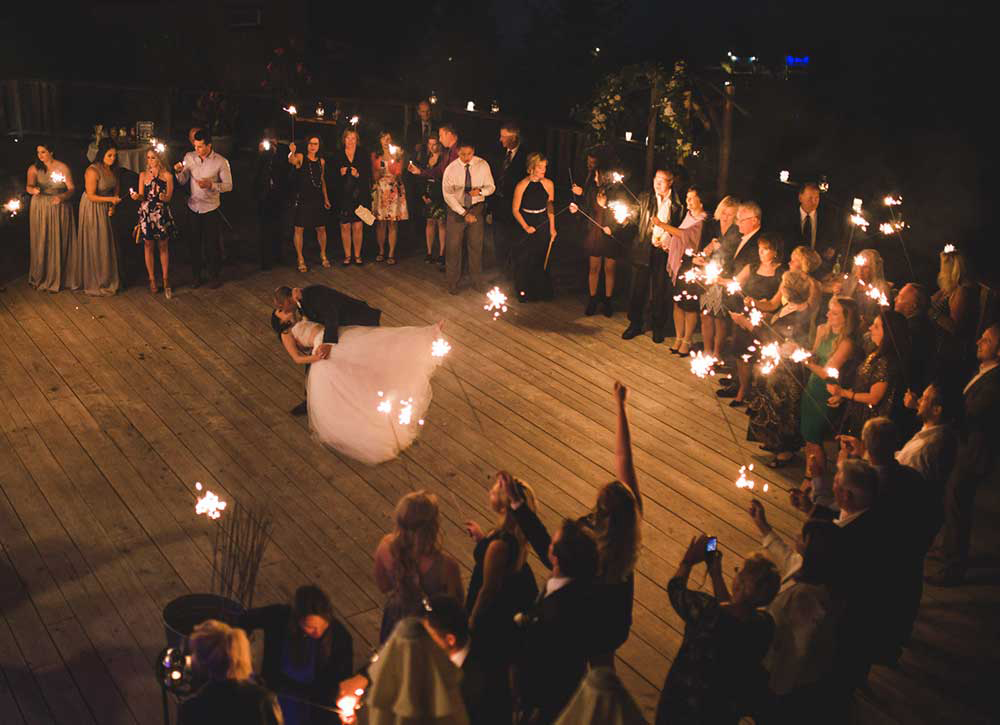 The reception should start almost immediately after the completion of the ceremony. It can take place outdoors on our covered atrium, or on the lower sundeck. Sparkling wine, bar service, and tray passed hors-d’oeuvres can also begin.